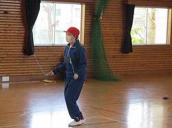 前半は奇数班による8の字跳びを行いました。