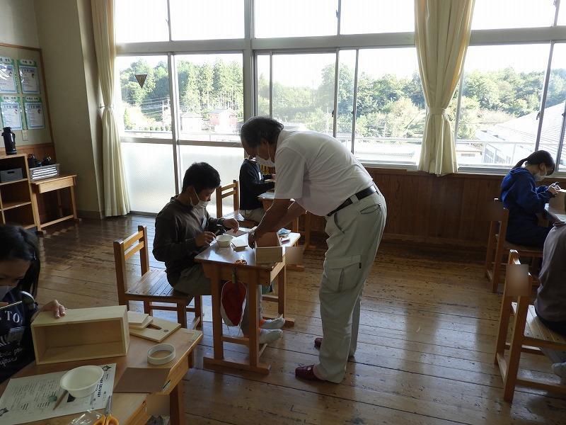 10月14日(金)、5年生は、鹿沼市経済部林政課、鹿沼木工の皆様にご協力をいただき、南摩の森林と環境について学びました。木の良さを実感できるようにと、木工体験にも挑戦しました。木のぬくもりに触れ、木製品の良さを感じることもできたようでした。