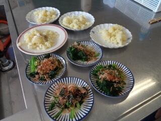 今日は「ほうれん草のおひたし」と「ゆでいも」を作ります。