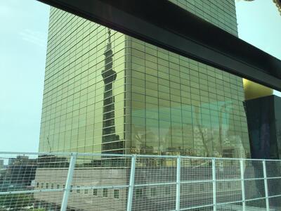 スカイツリーがビルに反射しています。