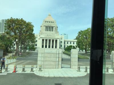 途中、渋滞もあり、やや遅れて国会に到着しました。