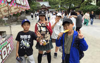 班ごとに考えたコースで、思い思いの昼食を食べ、お寺を見学したり、買い物をしたりしました。