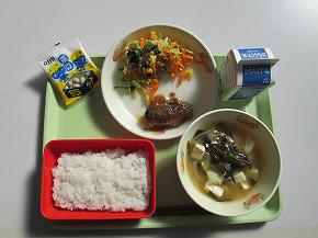いわしのおかかに、ふくまめ、そして、なのはなあえ、米飯、みそ汁、牛乳です。