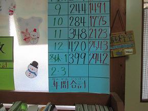 学校図書館での貸し出し総数の1月分までの集計が出ました。3000冊に近づいてきました。