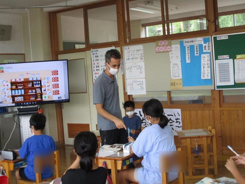 9月5日(月)、4年生の教室に行ってみると、ALTの先生を交えて、外国語活動の学習をしていました。文房具を英語でどのように言うのか、発音を聞きながら練習していました。担任の先生やALTの先生の質問に、子どもたちは、上手に答えていました。