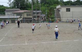 一班およそ10名の「たてわり班」のグループで記録測定の場所に移動します。