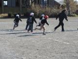 業間休みの様子です。天気がいいのでサッカーやドッジボール、おにごっこ、きれいな色の実を集める児童もいました。