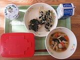 今日は「冬至献立」です。冬至とは一年で太陽の出ている時間が一番短い日です。病気をすることがなく、元気に過ごせるようにとかぼちゃを食べたり、ゆず湯に入ったりする風習があります。献立は、わかめごはん、牛乳、ちくわ磯辺揚げ、ゆず白菜漬け、かぼちゃ入りけんちん汁です。栄養たっぷりの給食で寒い冬を乗り切りましょう。