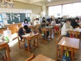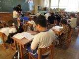 3年生は算数の授業です。この後テストのようでみんな練習問題に真剣に取り組んでいます。