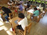 5,6年生は理科です。5年生は「ふりこのきまり」の学習です。ひもの長さを変えて実験していました。どんなことが分かったでしょうか。6年生は「てこ」の学習です。てこの力を説明するにはどう説明したらよいか個人で考えていました。わかりやすく書けたでしょうか。