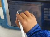 2年生は算数です。タブレットを使って自分のペースで学習を進めています。使いこなしていますね。