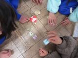 2年生は算数です。かけ算九九のまとめの学習でしょうか。かけ算九九の答えをマス目に書き、かけ算ビンゴを行っていました。ビンゴになった人には素敵なプレゼントがありました。