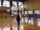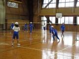3,4年生は合同で体育です。ネット型のボールゲームを行っていました。どちらのチームも協力してボールを追いかけています。