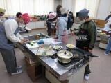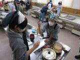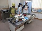 5,6年生は家庭科で調理実習です。5年生はご飯とみそ汁、6年生は一食分の献立を考えての調理です。