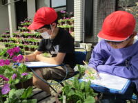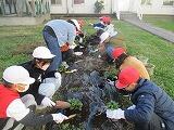 環境委員会さんが玄関のプランターの植物の植え替えをしてくれました。