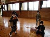 お家の方にもご参加いただき、1年生が昔の遊びに挑戦しました。