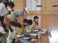 3,4年生の算数で、講師に市田繁子さんをお迎えして「そろばん」の単元を教えていただきました。そろばんに触ったことがない児童がほとんどなので、試行錯誤する場面もありましたが、市田さんにアドバイスしていただきながら、頑張っていました。「楽しかった!」という声が上がっていました。