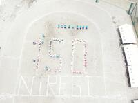 若手教員を中心に先生方がラインを引いてくれて、児童が「150」の文字を作ってくれました。