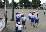 3,4年生は合同で「体育」です。ハードル走の最初の学習です。まずは、50m走を走ってからハードルに慣れていきます。