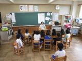 夏休みが明けて、初めてのKLVさんによる朝の本の読み聞かせがありました。今日のお話は「おおきな かぶ」です。1年生は教科書にのっているお話ですね。掛け声をかけるところでは、みんなで「うんとこしょ どっこいしょ」と声を合わせました。