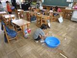 今日から清掃班が替わります。児童は各場所に分かれて担当の話合いをしています。