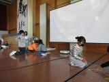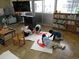 アクティブクラブでは、ボールゲームをする予定だったようですが、暑さのためとても短い時間しか活動ができませんでした。残りの時間は涼しい教室で「震源地」のゲームを楽しみました。