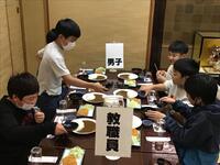 間も無く夕食です。給食当番のように上手に配膳しています。夕食の後はナイトゲームです。