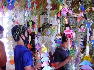 7月7日は七夕。KLVの方々が笹や飾りを用意してくださって、七夕飾りを作りました。子どもたちもお願い事を書いて笹に下げました。みんなの願いが叶いますように!