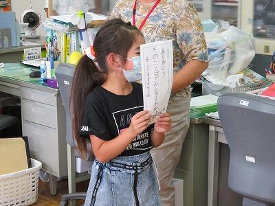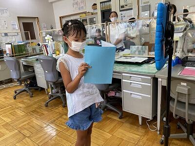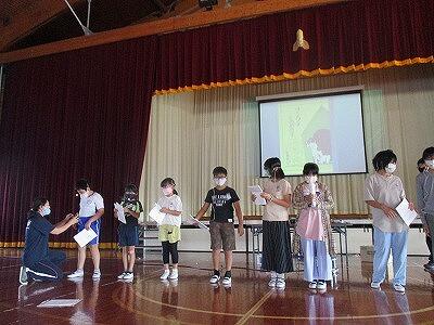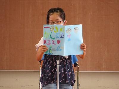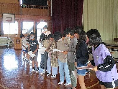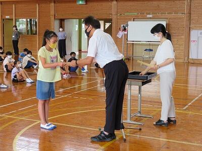 体育館で終業式を行いました。代表児童の「1学期をふりかえって、2学期の目標」の発表はとても立派でした。いよいよ明日から夏休みになります。私からは、規則正しい生活を送ってください、病気や事故にならないでください、長所を伸ばしたり苦手を克服したり何かひとつでいいからチャレンジをしてくださいの3つをお願いしました。2学期の始業式にみなさんの元気な笑顔が見られることを楽しみしています。