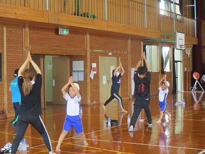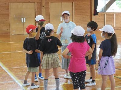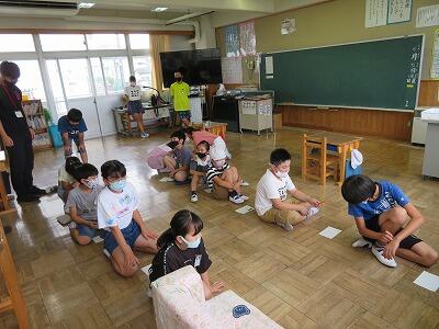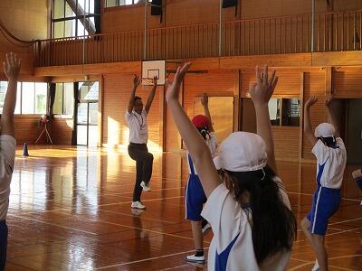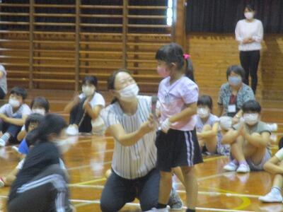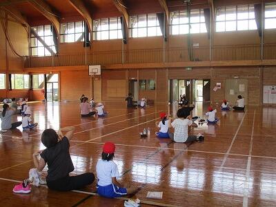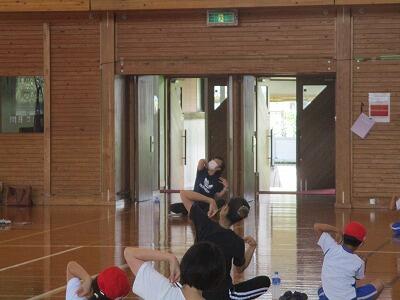 糸井優子先生を講師に、1.2年生が楽しく親子フィットネスを体験しました。当初の計画では、エアロビクス的なものでしたが、気温が上がって熱中症が懸念されたため、急遽ヨガ的なものに変更しての実施となりました。糸井先生、対応ありがとうございました。