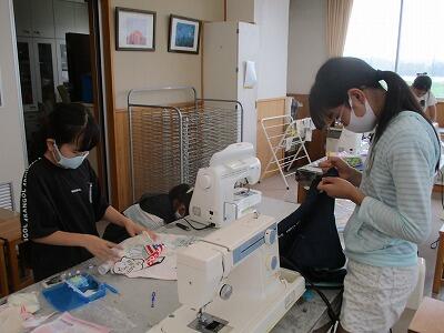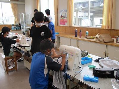 6年生のエプロンつくり。作業がとても様になっていて、見ていてかっこいいです。どんなエプロンができるのかな?