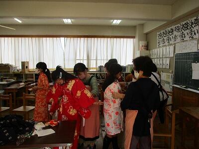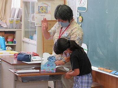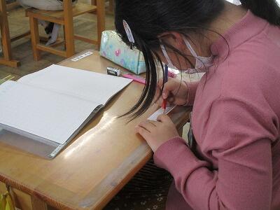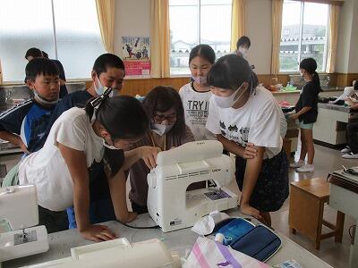 5年生が家庭科の授業で針を使った縫い方、ボタンの付け方の勉強をしました。みんな真剣に頑張っていました。