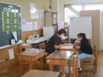 「チームス」と「オクリンク」というソフトを使って児童とのやり取りをするので、その研修をしているところです。
