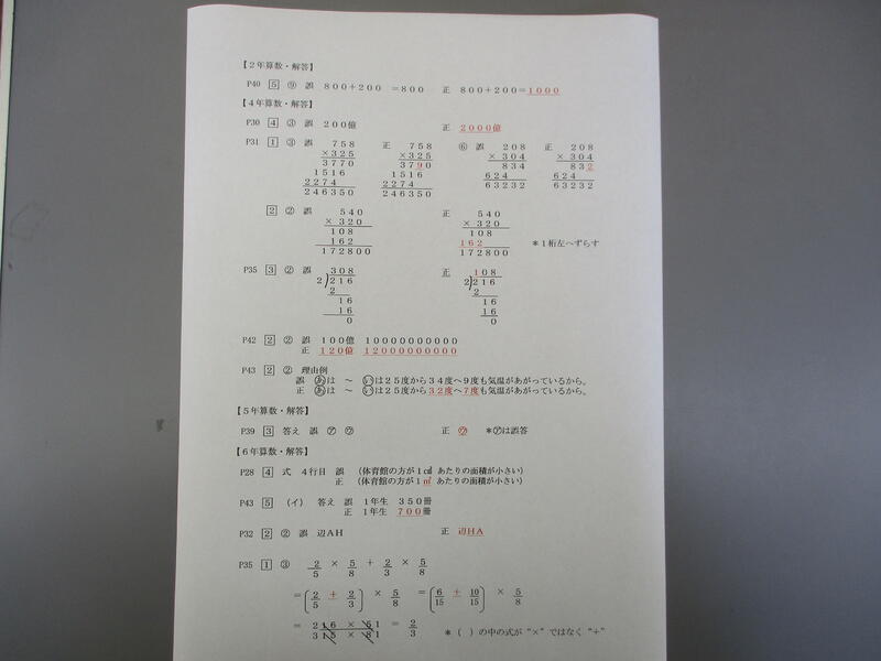 夏休みの宿題に出されている「夏休みの友」の解答に訂正がありました。