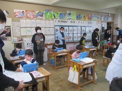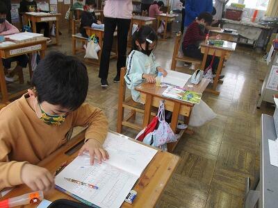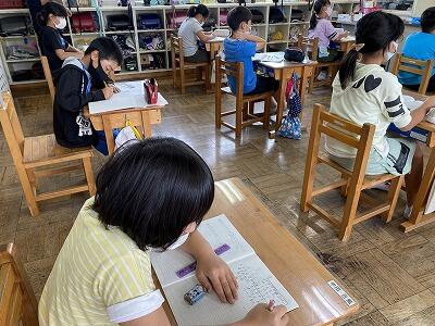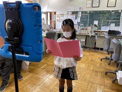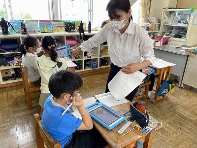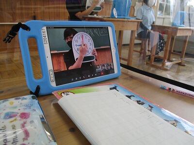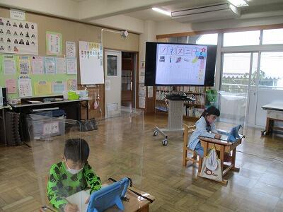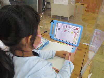 1年生もタブレットを使った学習です。操作もですが、こちらは遠隔授業の練習をしています。どんどんできるようになりました。