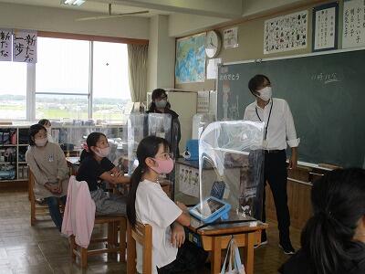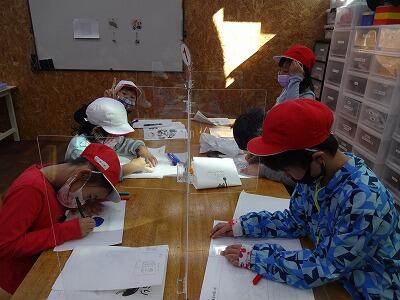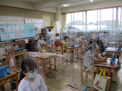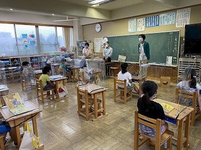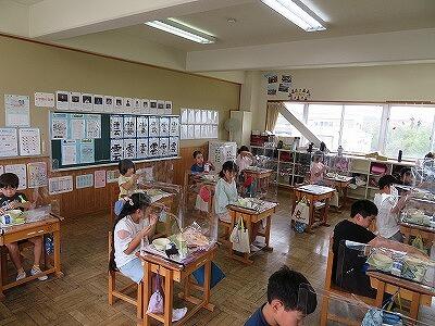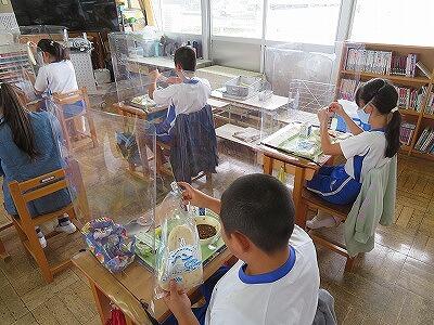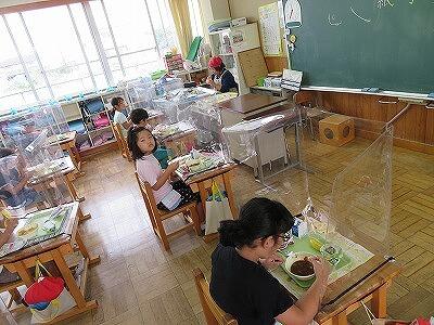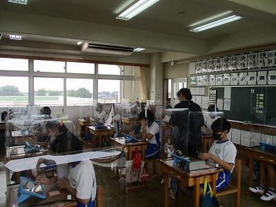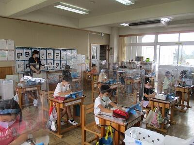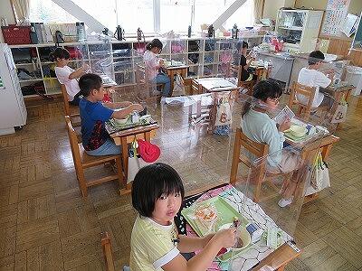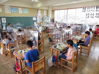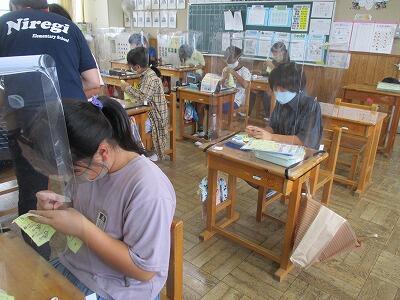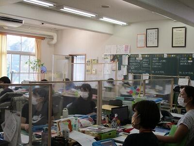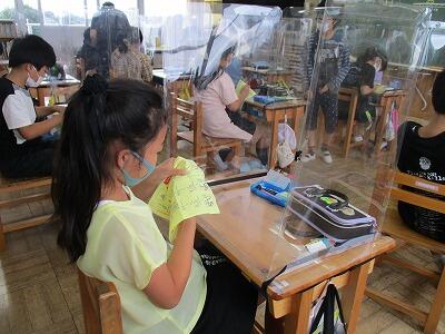 緊急事態宣言中は、机に飛沫防止ガードをつけることにしました。机が小さくて教科書とノートを一緒に置けません。かなり不自由をかけてしまって申し訳ないのですが子どもたちは頑張ってくれています。