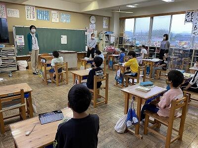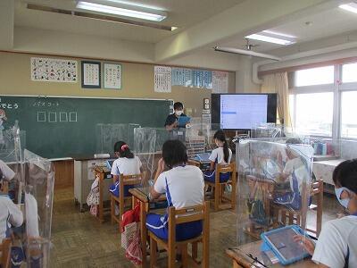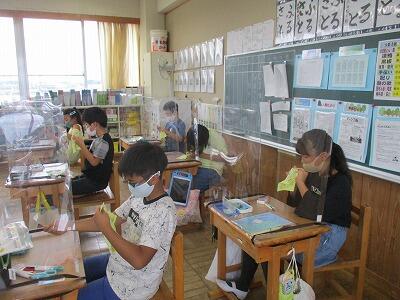 各学年ともチームスとオクリンクというソフトを利用した授業展開で、学習を進めていっていただいています。これによって児童も教員もオンラインでのやり取り(健康観察、課題の指示、説明、課題の提供、意見交換、課題の提出など)がスムーズに行われるようになります。