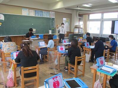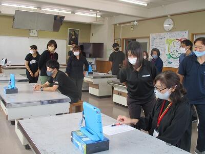 放課後、ICT活用アドバイザーの永山先生のご指導の元、職員の研修を行いました。