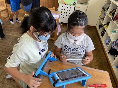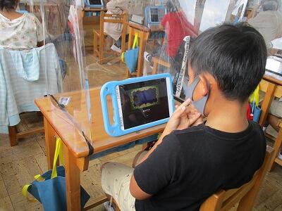 2年生がタブレット操作の練習中!ばっちりできるようになりました。家でも、ひとりでもできるかな?