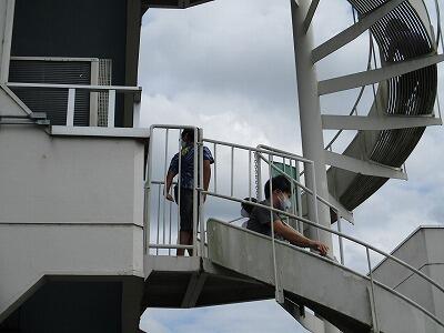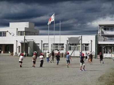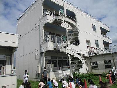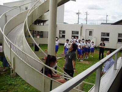 ついでに楡木小のシンボル?である滑り台を使った避難を3,4,5,6年生に行ってもらいました。火事で廊下が煙だらけなんて場合にも使えそうです。