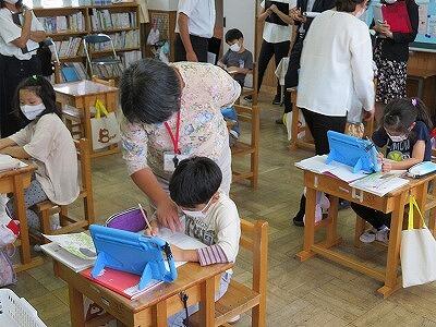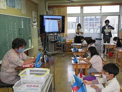 ICT活用アドバイザーの永山先生に授業に入っていただき、児童にタブレット操作を学んでもらっています。6年生はもうかなり慣れているようで、スムーズにタブレットを操作しています。