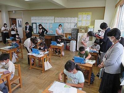 今日の授業の研究テーマは、話し合いなどの学習形態やICT機器の活用を通した学び合いの工夫です。6年生はICT機器の操作にも慣れ、時には「こうしたほうが早いですよ」などと先生を助ける場面も。頼もしい!