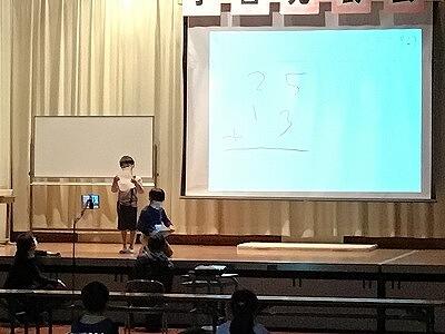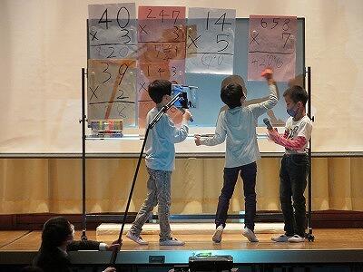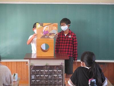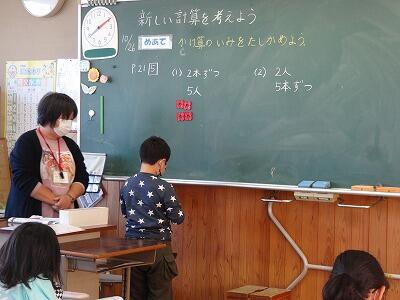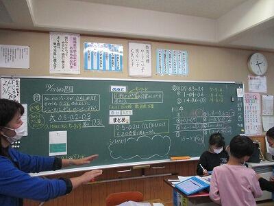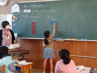 3年生の算数。少数の位の引き算の授業です。どうしたら楽しい授業になるか、たくさんの工夫を盛込んでの展開となりました。子どもたちはいきいきと活動していました。