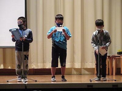 各学年の代表児童は、落ち着いた態度で発表することができ、とても素晴らしかったです。それぞれの学習や児童会、行事にかける思いを聞いて、その気込みに感動し、ぜひ目標達成してもらいたいと思いました。