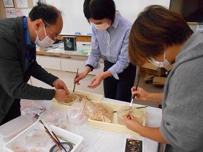 マスク、ビニールの手袋、取るのに使用した箸やスプーンはその都度交換を行っています。