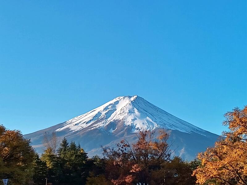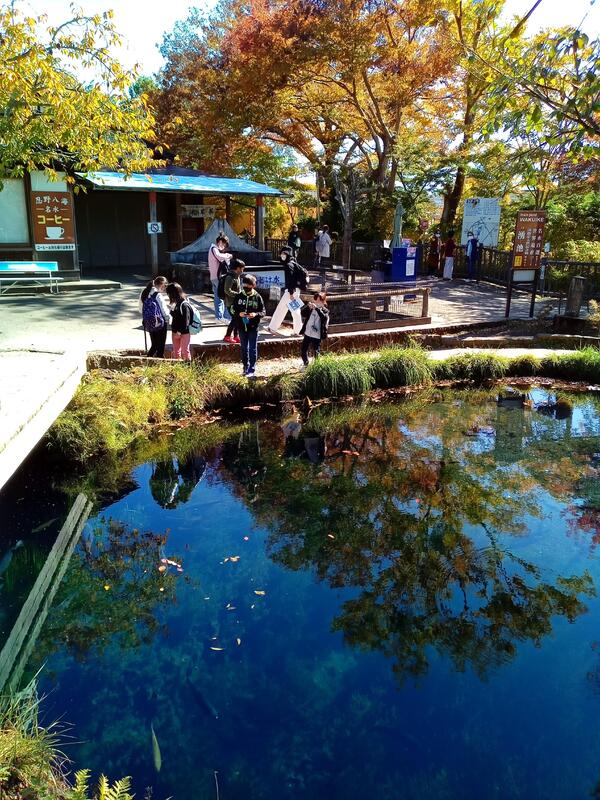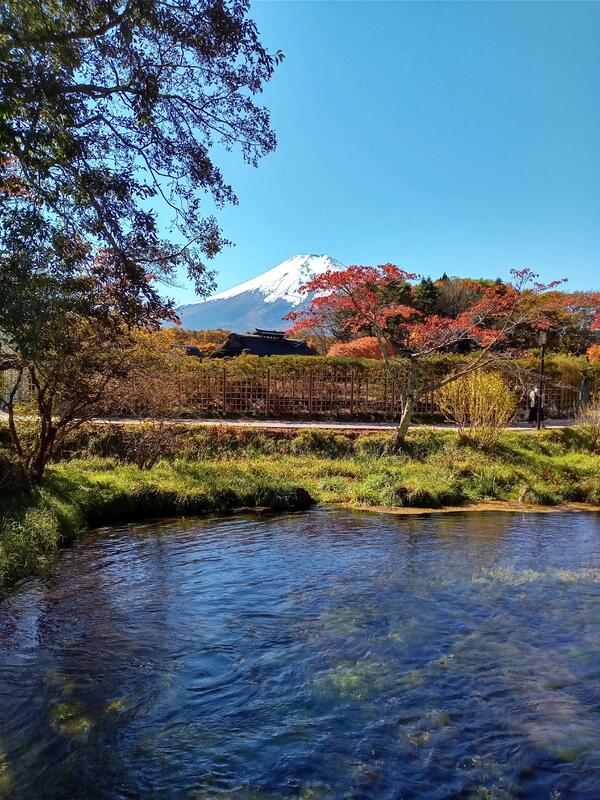 富士山と紅葉が色を添えて更に素晴らしい風景に!とても綺麗な湧水池でした。