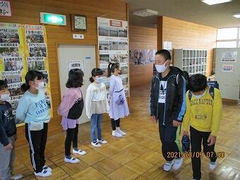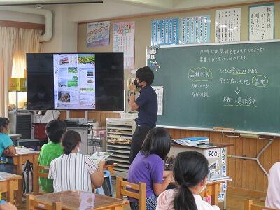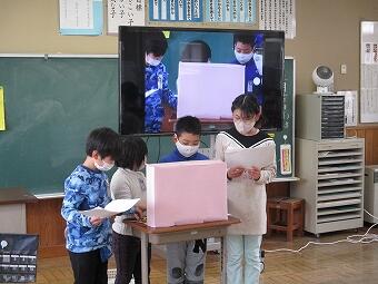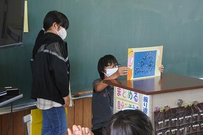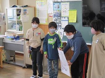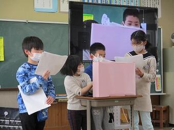 2年生と3年生が交流授業を行いました。3年生は一年間かけて調べた千葉省三について発表しました。2年生は3年生の生活について質問しました。どちらの学年も交流を楽しみながら、相手意識をもった学習をすることができました。