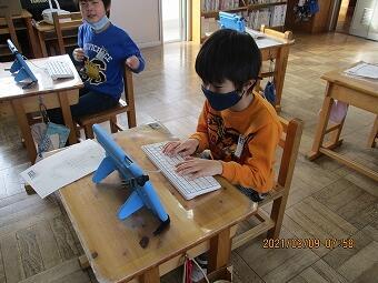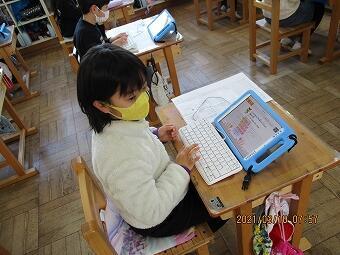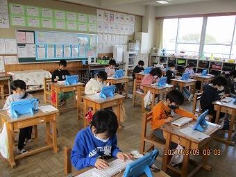 3月10日(水)2年生朝の学習 ローマ字タイピング