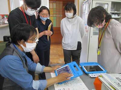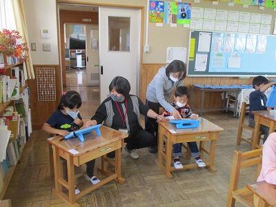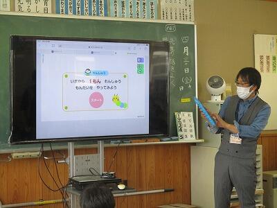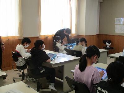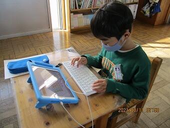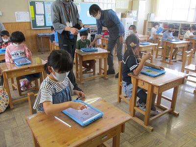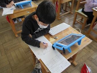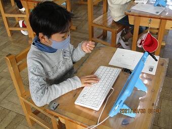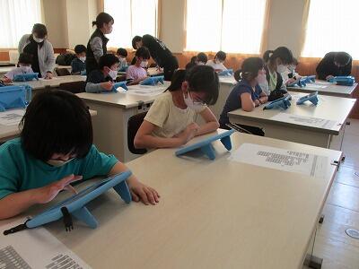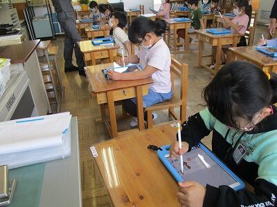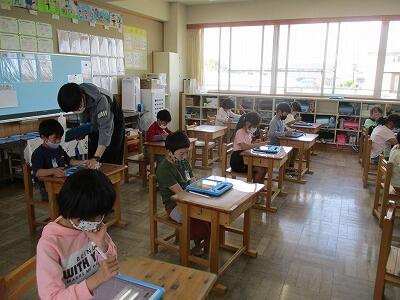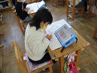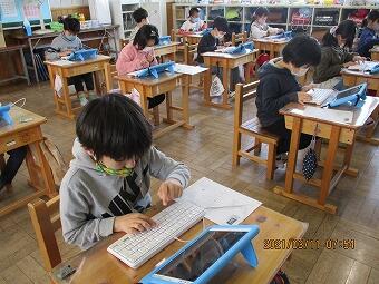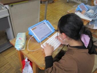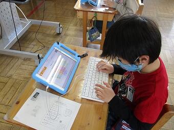 2年生がタブレットとキーボードを使ってローマ字打ちに挑戦しました。初めてのローマ字打ちでしたが、どの子も飲み込みが早く、どんどん上達していました。
