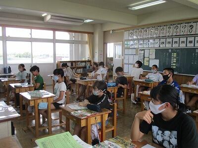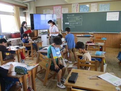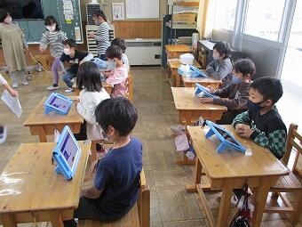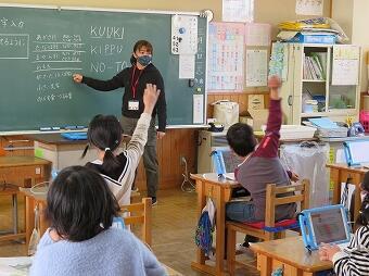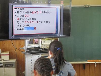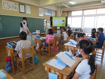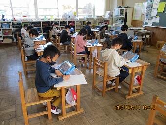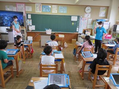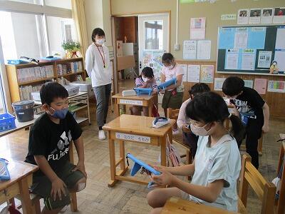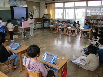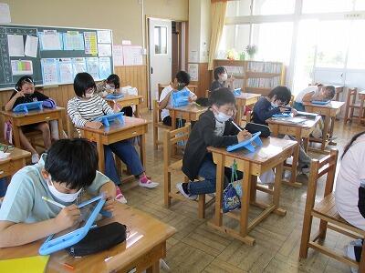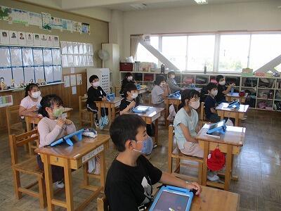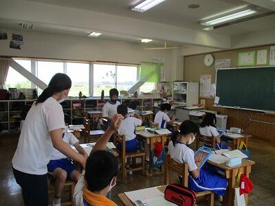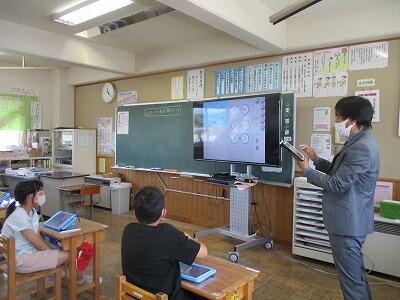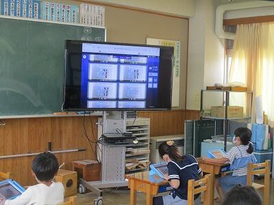 3年生はアリスター先生との外国語活動を行っていました。5年生は社会科で世界の国々をタブレットを使って調べていました。どちらの学年も意欲的に取り組んでいました。